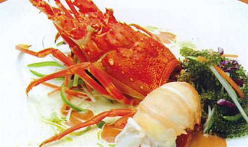 Tôm hùm hấp rượu vang : Nguyên liệu : 1 con tôm hùm 350gr, ít rau thơm, hành tươi, dưa leo, chanh, ớt, ít rượu cocktail. Cách chế biến : Cho Tôm hùm vào nồi hấp cách thủy với rượu vang. Sau đó tách vỏ, bày lên đĩa rau, ăn với sauce muối tiêu chanh.